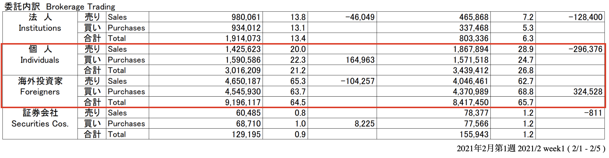 (JPX 日本取引所グループ 投資部門別売買状況より引用)