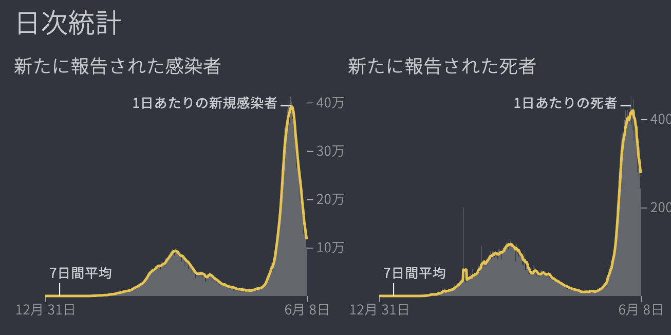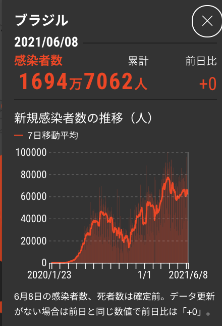 (ジョンズ・ホプキンス大学 コロナ推移マップより引用)